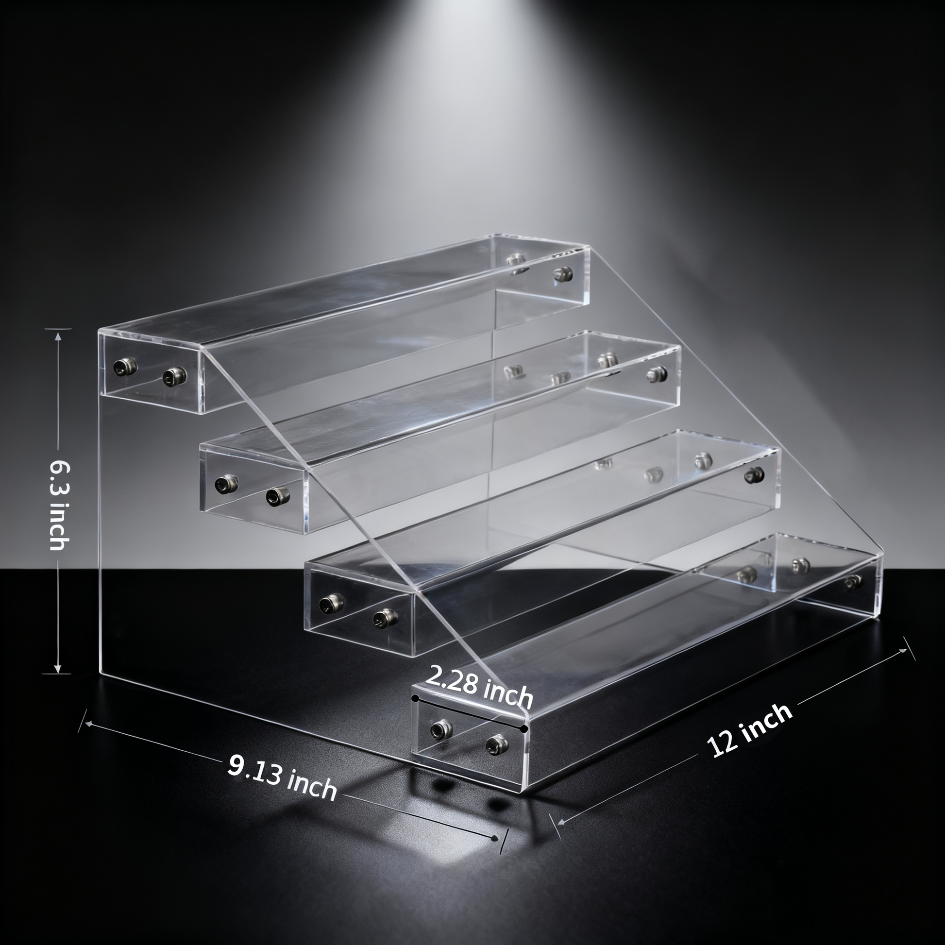 Crafted from thick, high-quality acrylic, this display stand offers excellent durability and load-bearing strength. The transparent finish enhances visibility while the triangular side brackets with embedded screws provide extra stability, ensuring your items stay securely in place without wobbling or bending.