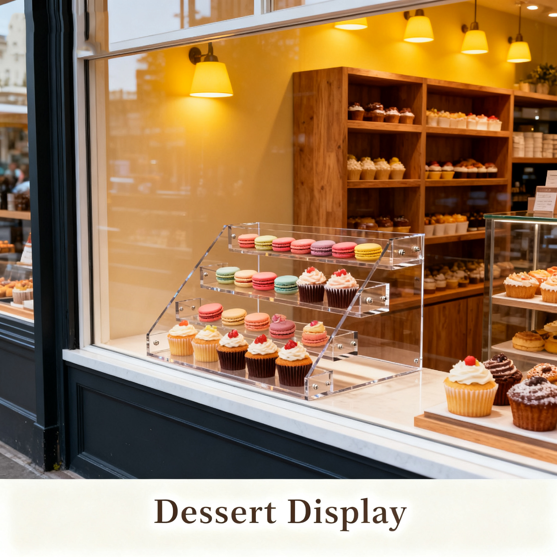 This 4-tier acrylic shelf creates a modern “floating” visual effect that draws attention to your products or collections. Ideal for displaying perfume, nail polish, essential oils, cupcakes, candies, snacks, or jewelry — perfect for home organization, parties, and retail showcases alike.