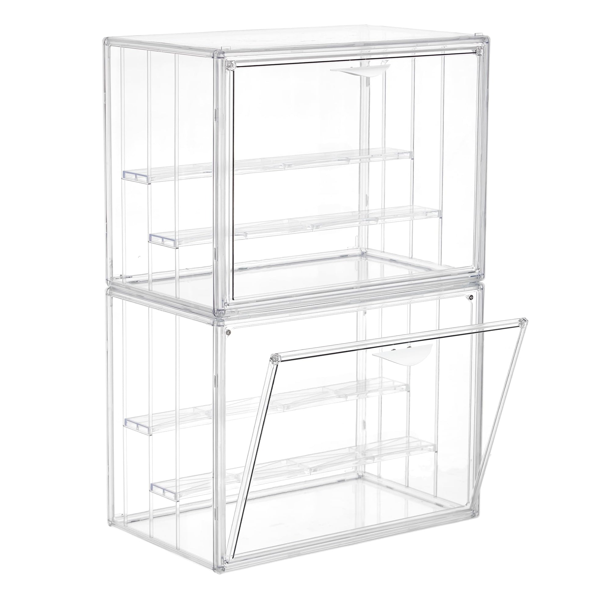 Acrylic Display Case for Collectibles 3 Layer 2Pcs Adjustable Figure Display Case with Magnetic Door Clear Stackable Display Box for Figures Showcase,Ideal for Blind Box Figures & Model Collectibles