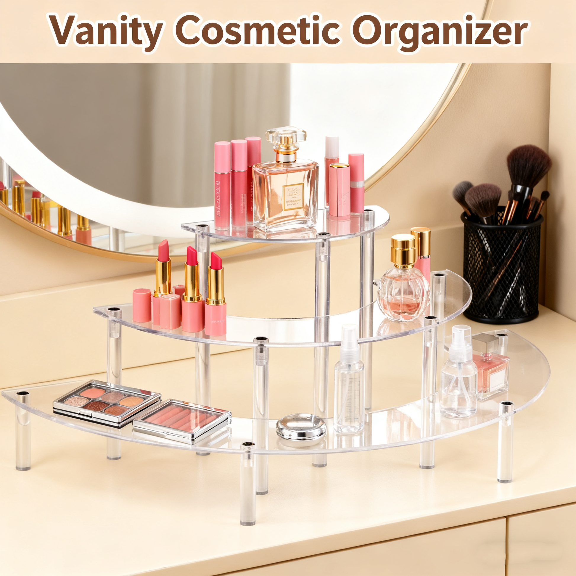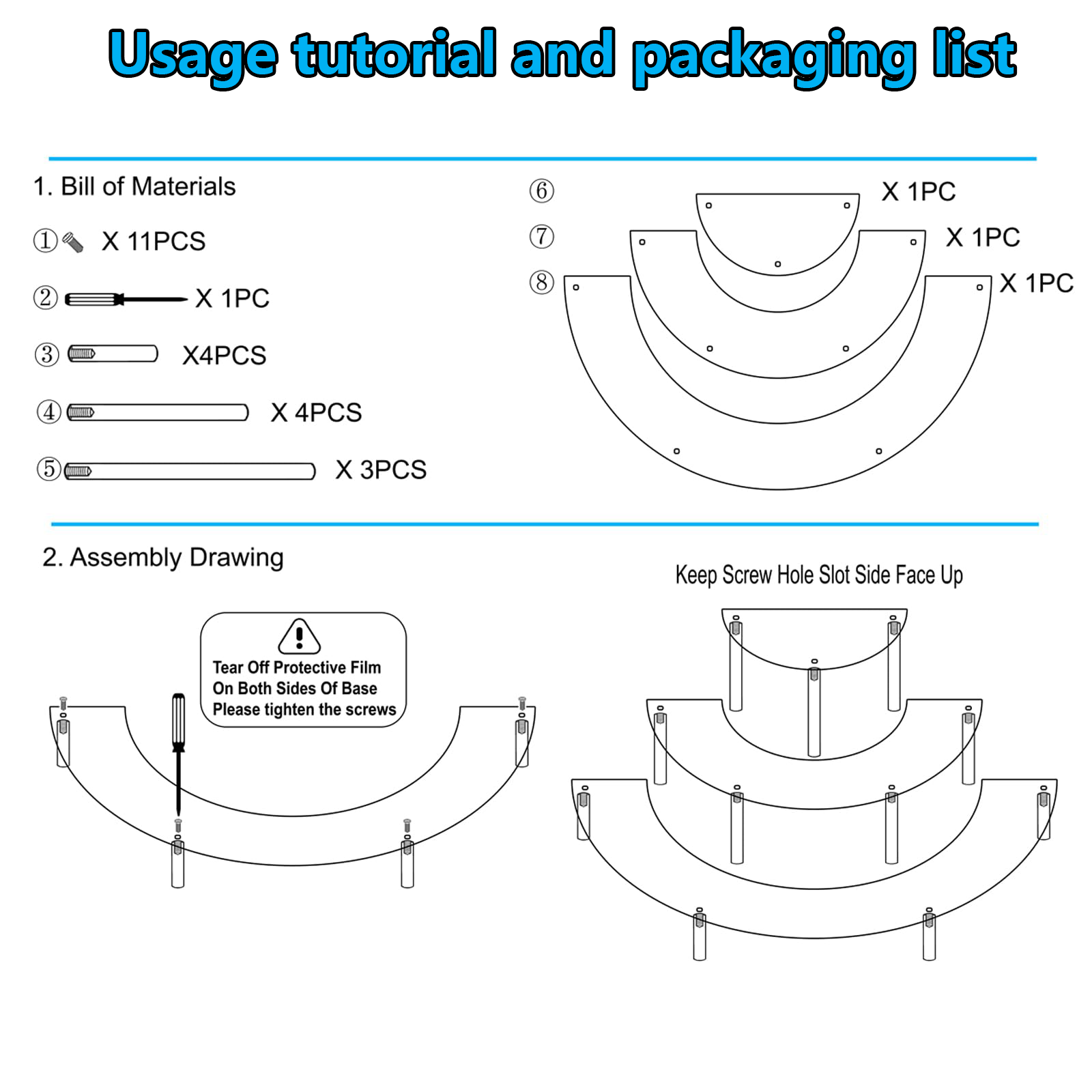 Each half-moon acrylic stand measures 14.8 x 7.4 x 5.7 inches, featuring three sturdy tiers for versatile use. Arrange both risers together to form a full circular display, or separate them for two semi-circular setups. Ideal for organizing and displaying perfumes, cupcakes, skincare, Amiibo, Funko POP figures, or other collectibles in an elegant, space-efficient way.