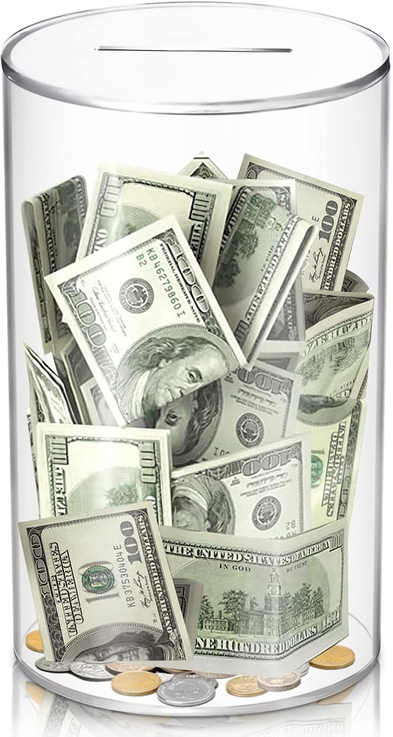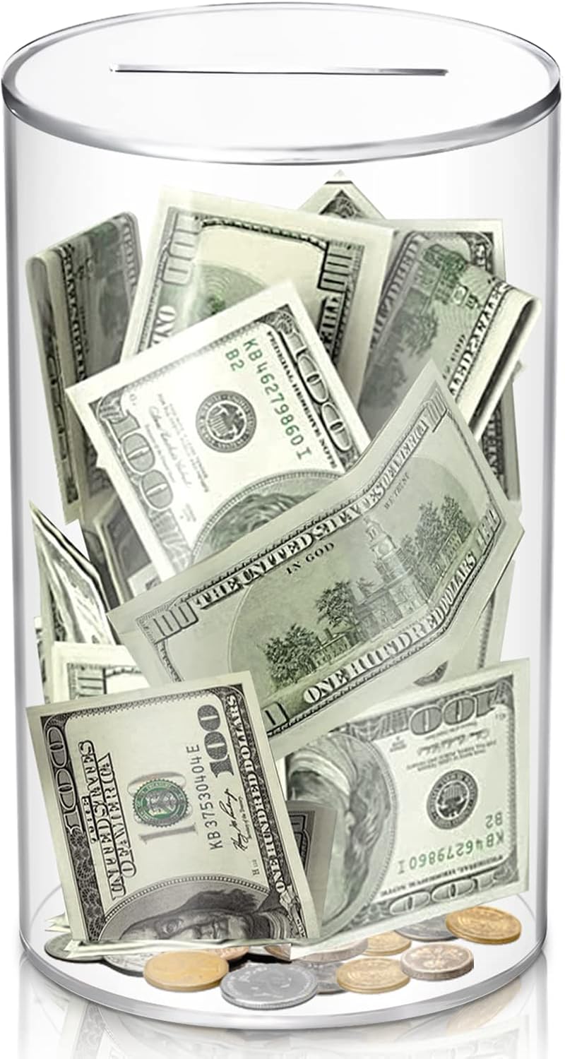 - 【Clear Savings Jar】Our saving banks are made of highly transparent acrylic, more durable than ceramic money banks, and much easier to open than difficult-to-open stainless steel piggy banks. The transparent acrylic allows you to Check Funds at Any Time. Enjoy the fun of money growth